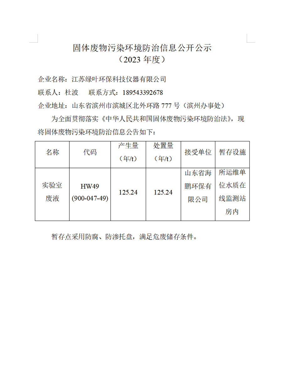 固體廢物污染環境防治信息公開公示 (2023年度)